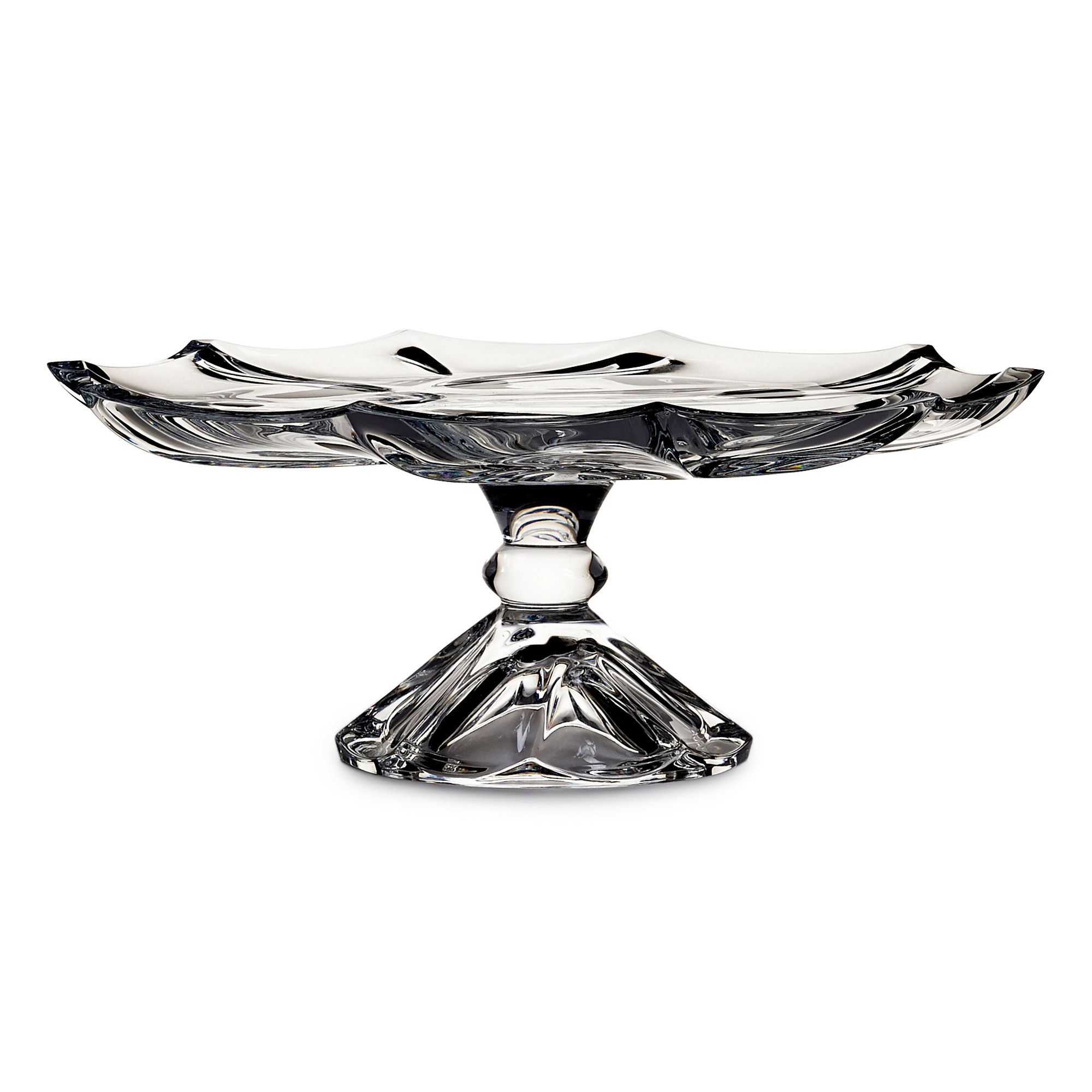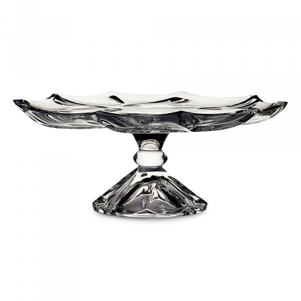 This chic crystal footed plate was hand-sculpted by Eastern European craftsmen. This statement piece will draw eyes to your favorite table, dresser or room.