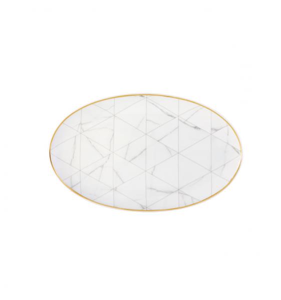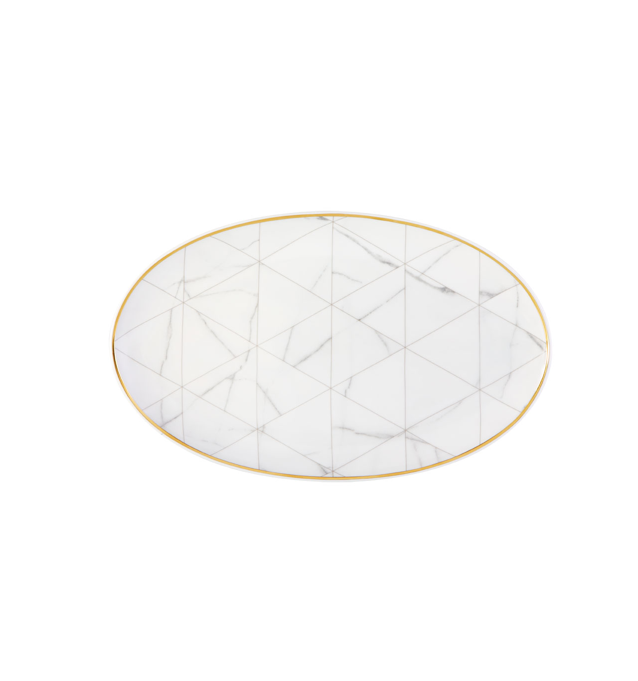 The combination between porcelain and drawings inspired by the noble marble of Carrara, a very refined, geometric approach, creates the illusion that each piece of the set is interchangeable.