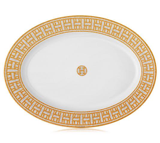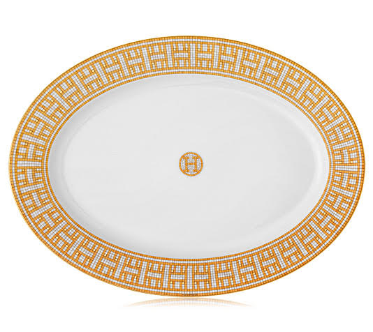 An homage to the birthplace of Hermes—No. 24 Faubourg Saint-Honore in Paris—Mosaique au 24 is inspired by Henry Pannier’s 1926 design of its flagship store. This collection reflects the store’s original color scheme of ochre and grey, as well as the signature Greek-style frieze that shines in gold from its central place upon the sandstone mosaic floor at the heart of the boutique. And above and beyond these specific evocations, this setting brings to your table shades of Greek classicism, modern sophistication, and contemporary design—all elements of the particular elegance that Hermes has come to represent.