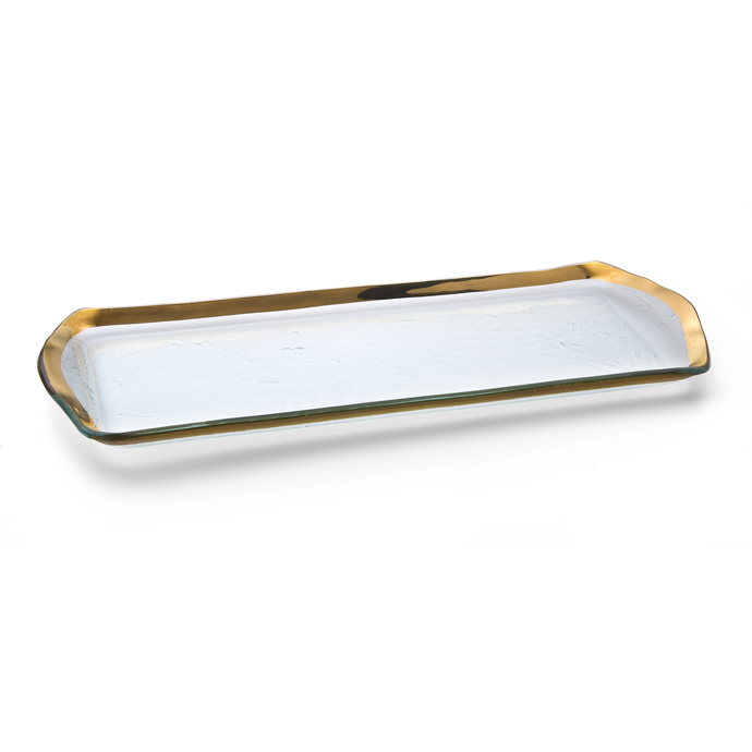 Durable, chip-resistant handmade glass with a gold trim. Dishwasher safe.Measures: 16 3?4 L x 6 3?4″ W