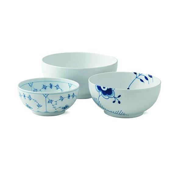 History Mix is an introduction to the world of Royal Copenhagen hand-crafted porcelain. Each set combines three bowls from three classic Royal Copenhagen patterns; Blue Fluted Plain, Blue Fluted Mega, and White Fluted. While each have different expressions, they beautifully complement each other because they are based on the same core design.