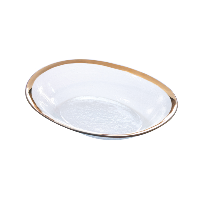 Annieglass Roman Antique large oval serving bowl-Gold is handcrafted by skilled artisans in California using production techniques that make each piece a unique work of art.
