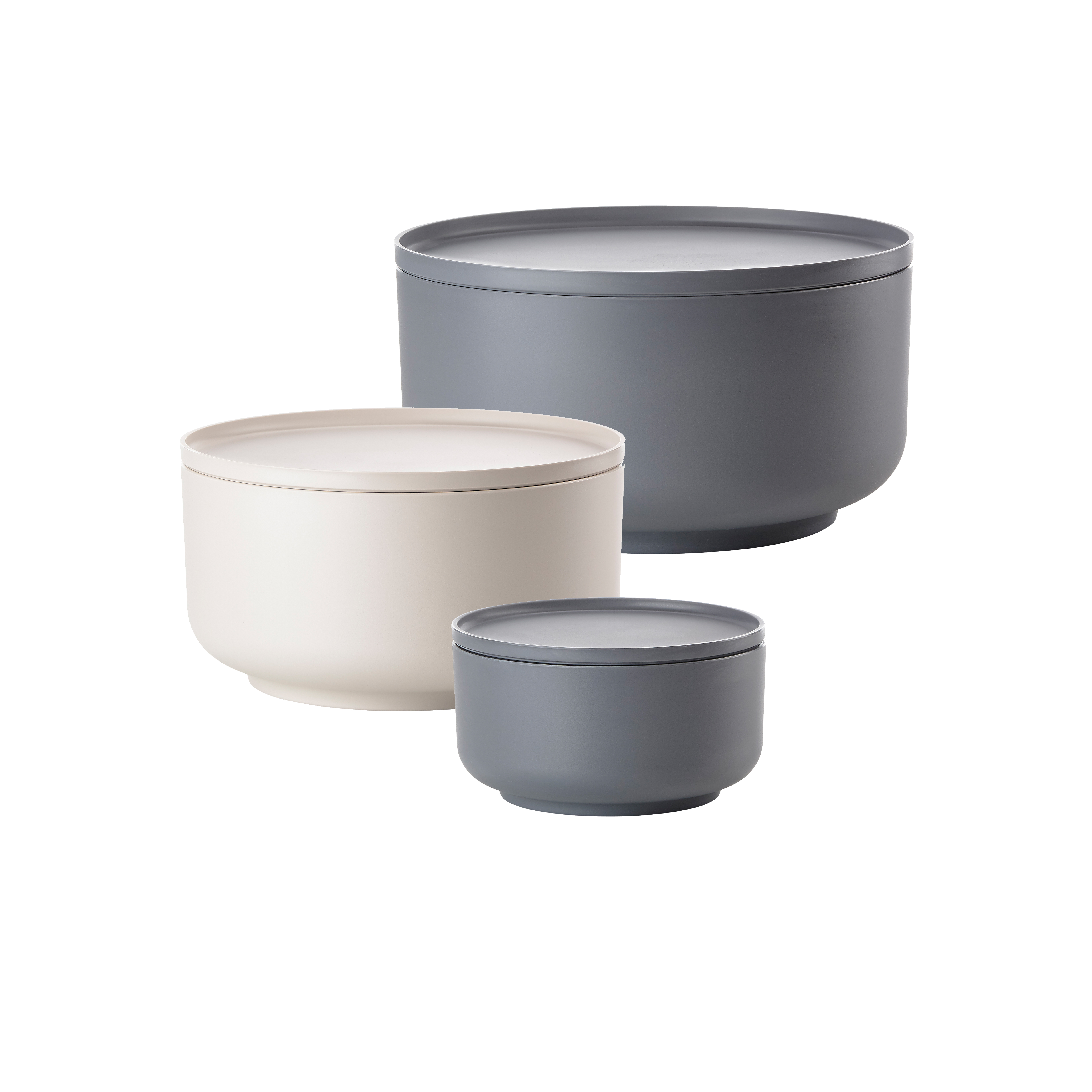 Aesthetics and functionality go hand in hand with this minimalist and multifunctional design. These lidded bowls can be used for preparing, serving, or storing food. The lids can be used as a platter, or a plate, as well as a covering.