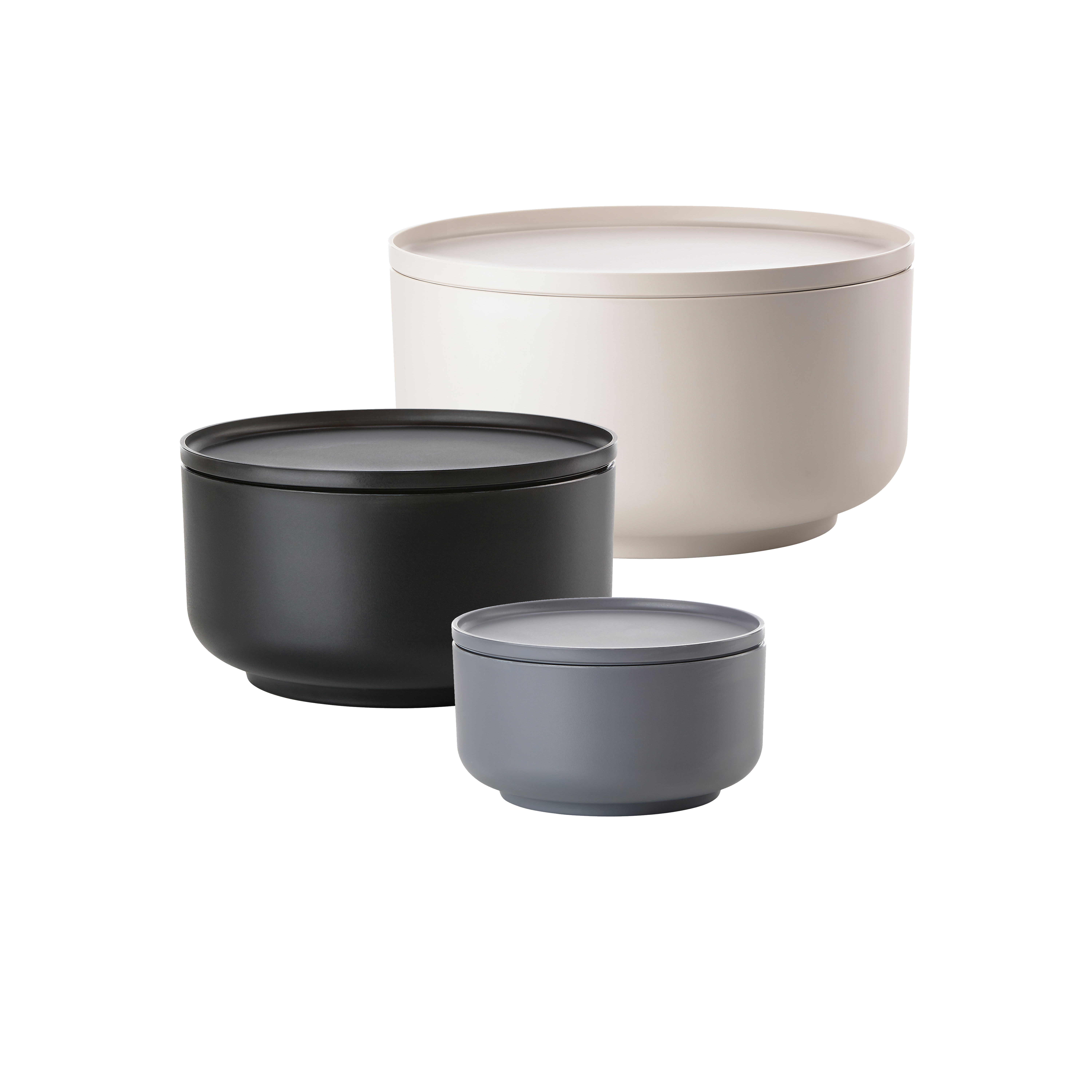 Aesthetics and functionality go hand in hand with this minimalist and multifunctional design. These lidded bowls can be used for preparing, serving, or storing food. The lids can be used as a platter, or a plate, as well as a covering.