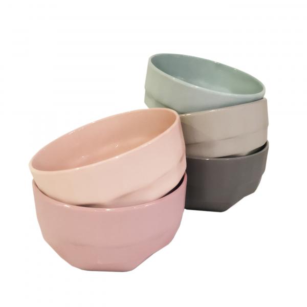 Set of five small porcelain bowls with facet style pattern.
