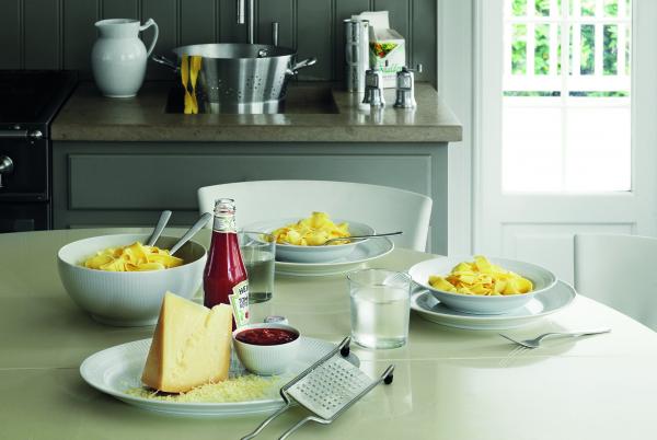 A simple fluted pattern lends rich texture to this elegant white dinnerware collection from Royal Copenhagen. High-quality porcelain makes it a beautiful, durable choice for entertaining and everyday dining alike.