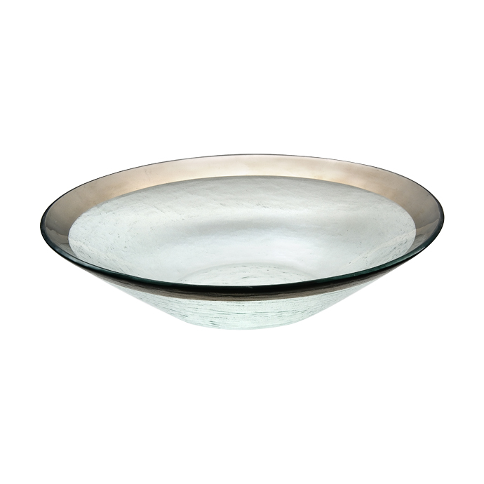 The handmade glass 13 1/4" wok bowl banded in genuine platinum trim, makes a great wedding gift, birthday gift, baby shower gift, or any other special occassion! Each Annieglass piece is handmade from architectural quality glass with Annie Morhauser's trademark slumping process which is a uniquely developed glass bending technique. Durable. Chip-Resistant. Dishwasher Safe. Sustainably Handmade in California.