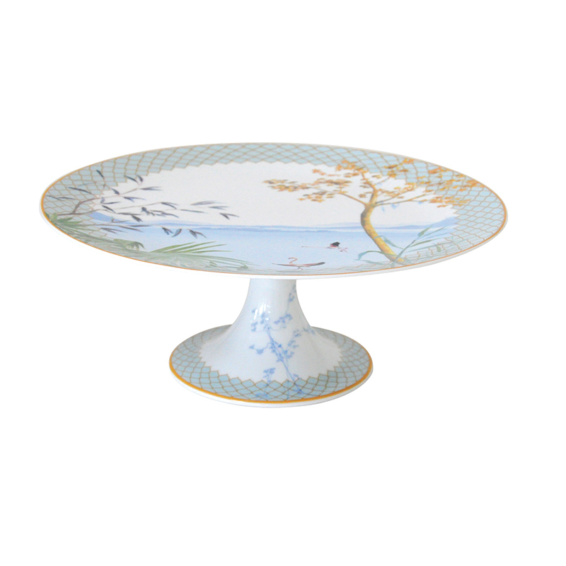 A lively design that recalls Florida in the 1950’s. The Tropiques collection is skillfully decorated and features its own individual cast of exotic animals and a beautiful mix of tropical flowers and plants. This Footed Cake Platter is ideal for serving cakes and pies.