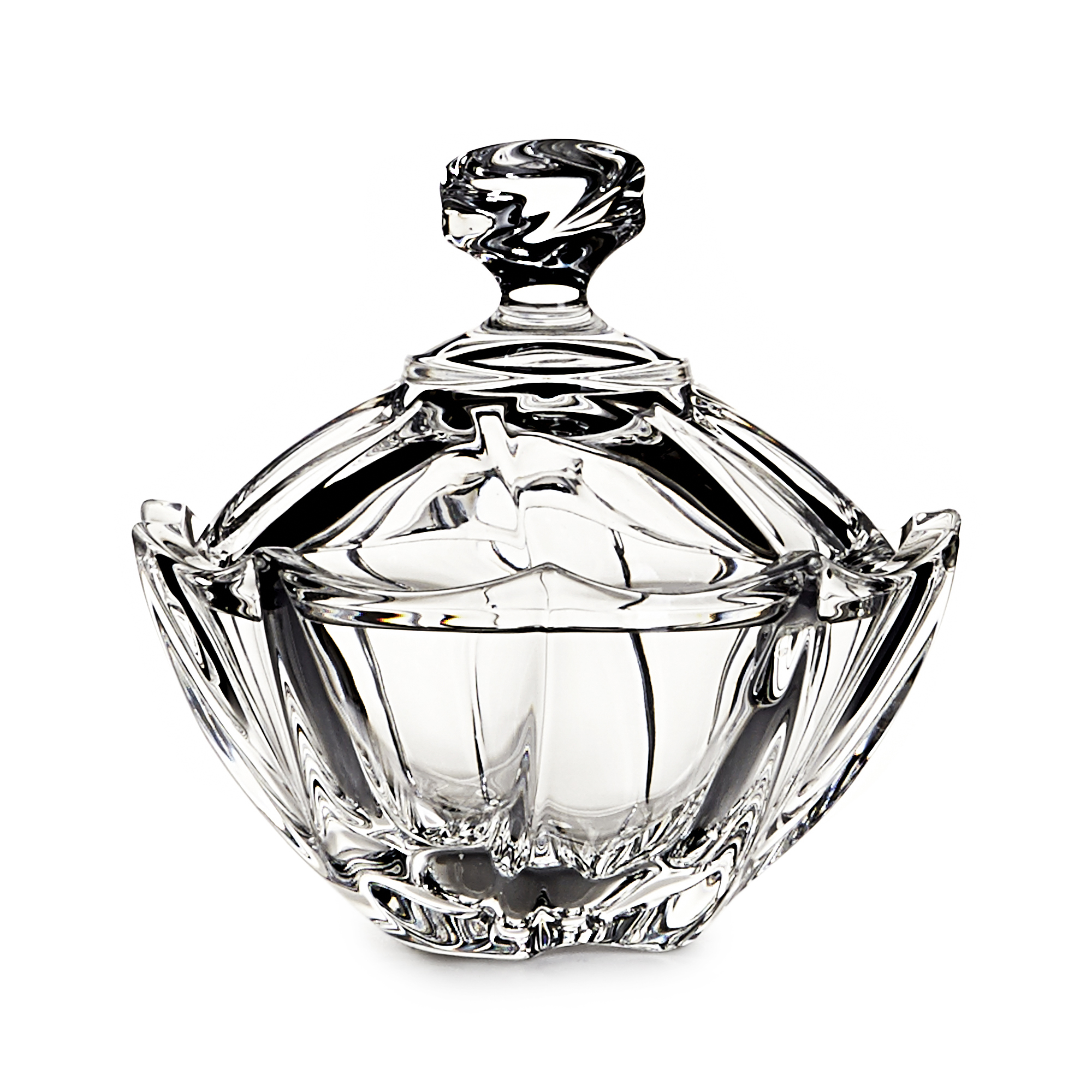 This understated crystal box was hand-sculpted by Eastern European craftsmen. This statement piece will draw eyes to your favorite table, dresser or room.