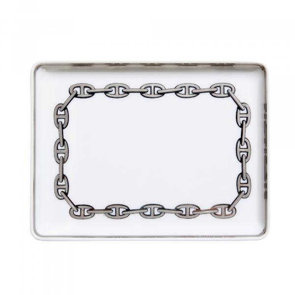 The elegant simplicity of this design recalls the great transatlantic luxury liners. This pattern is based on the bracelet of the same name created in 1938. The design adorns the rims of the plates and runs around the bodies of the serving dishes.