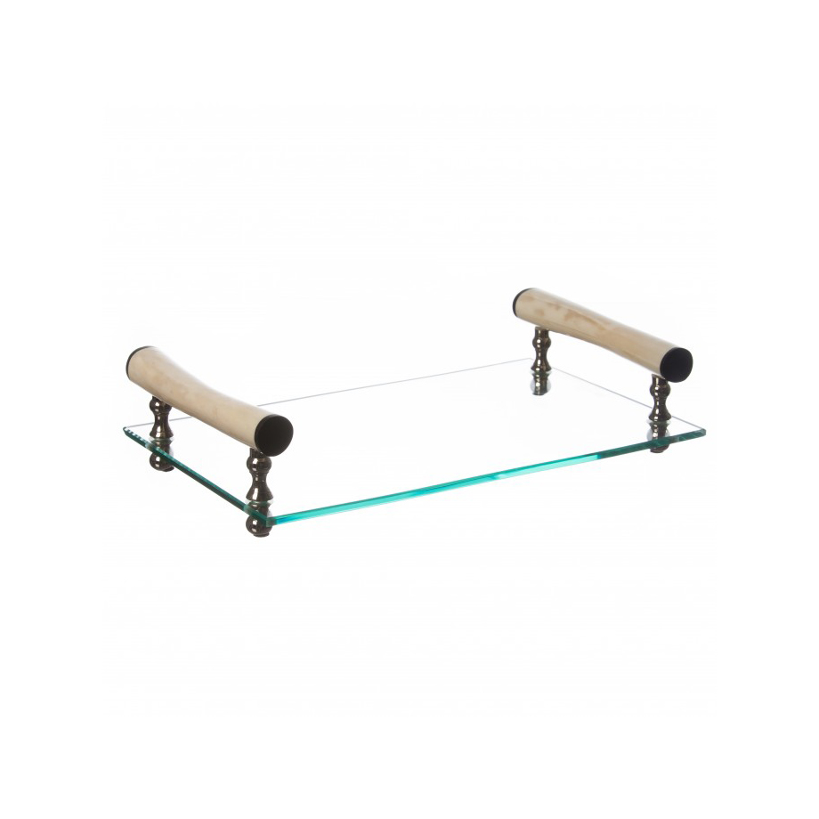 A charming glass tray with bone handles to add a subtle enhancement to your everyday life.