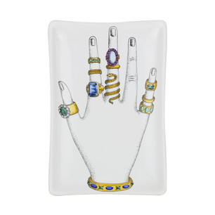Hand with Color Rings Rectangular Porcelain Tray