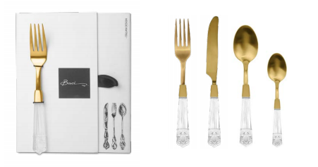 SET 24 PCS FLATWARE GOLD HANDLE CLEAR