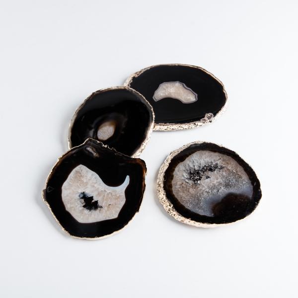 Beautifully polished agate gemstones are crafted into roughly round, luxury coasters with appealing natural edges. Like nature's fingerprints, these coasters are truly one of a kind and will add a natural touch to your table.