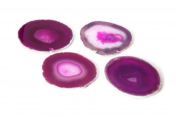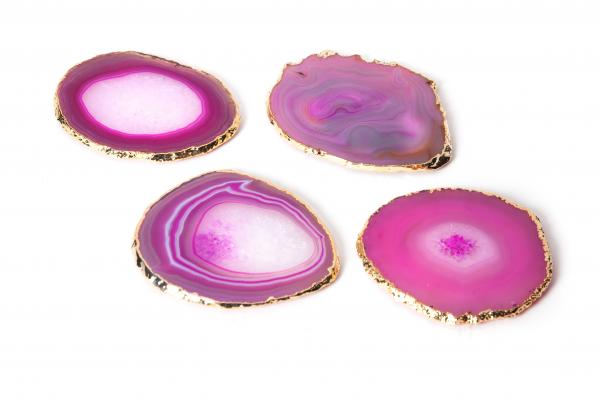 These coasters are weighty cuts of genuine stone. The rough edges will contrast with the polish of the surface and add a sophisticated look to your dining or coffee table.