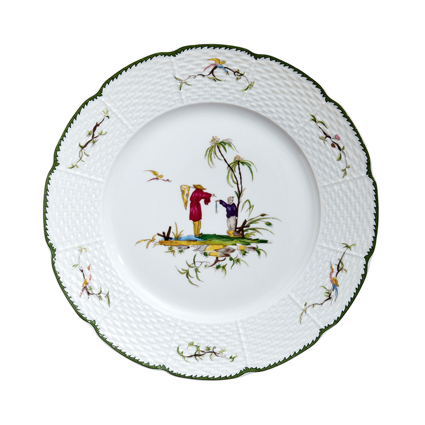 Inspired by the Rococo painter Jean Pillement, the striking dinnerware depicts Chinese country scenes from the eighteenth century. Add this joyfully nostalgic piece to your elegant table.