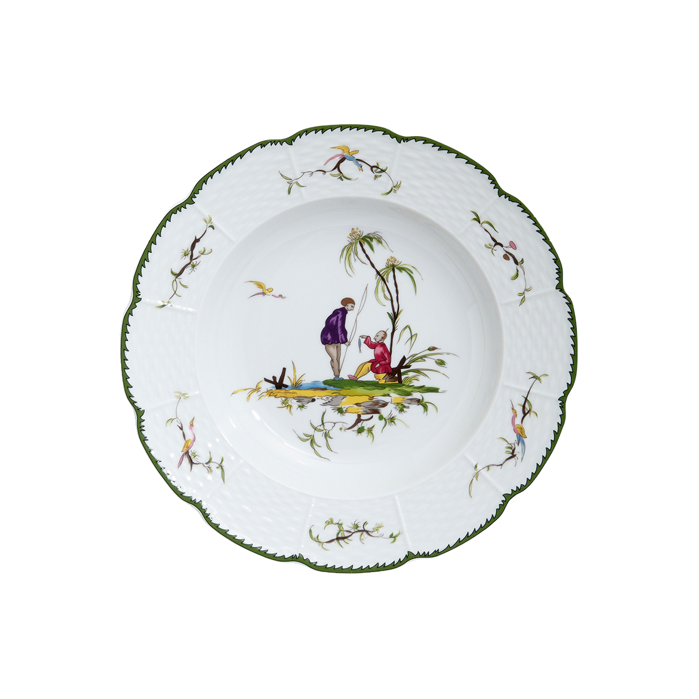 Inspired by the Rococo painter Jean Pillement, the striking dinnerware depicts Chinese country scenes from the eighteenth century. Add this joyfully nostalgic piece to your elegant table.