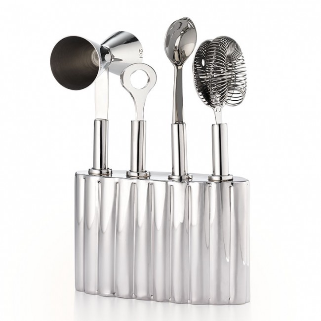 Bar Ice Buckets & Tools Silhouette Bar Tool Set w/ Scalloped Base (4pc Set)