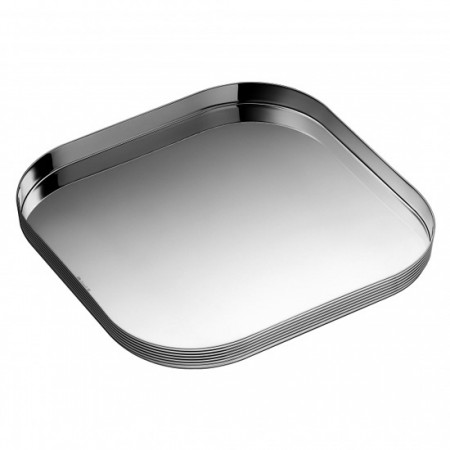 This square silver plated presentation/serving tray with slight raise rim makes an ideal housewarming, hostess or wedding gift. The K + T collection, a brilliant collaboration between award-winning restaurant/hotel designer Adam D. Tihany and Michelin-starred chef Thomas Keller of The French Laundry that mixes mirror-smooth and grooved edges, provides simple yet striking cocktail party and festive celebration basics while being anything but.