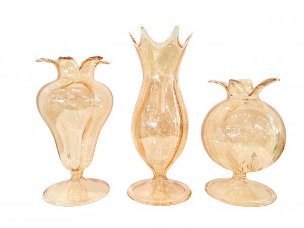These mouth-blown vases' spherical shape and amber color create romance in any environment.