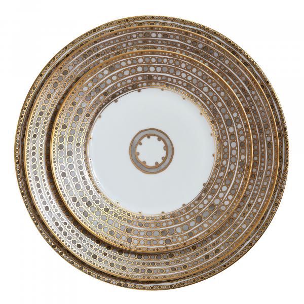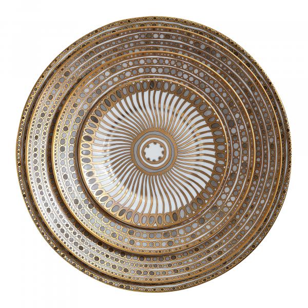 The Syracuse pattern was inspired by the ancient Greek city of Syracuse and the waters of the Ionian Sea. The metallic accents and rich tones make it a dazzling addition to any table.