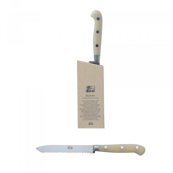 Forged full tang knife with Insieme individual fitted block