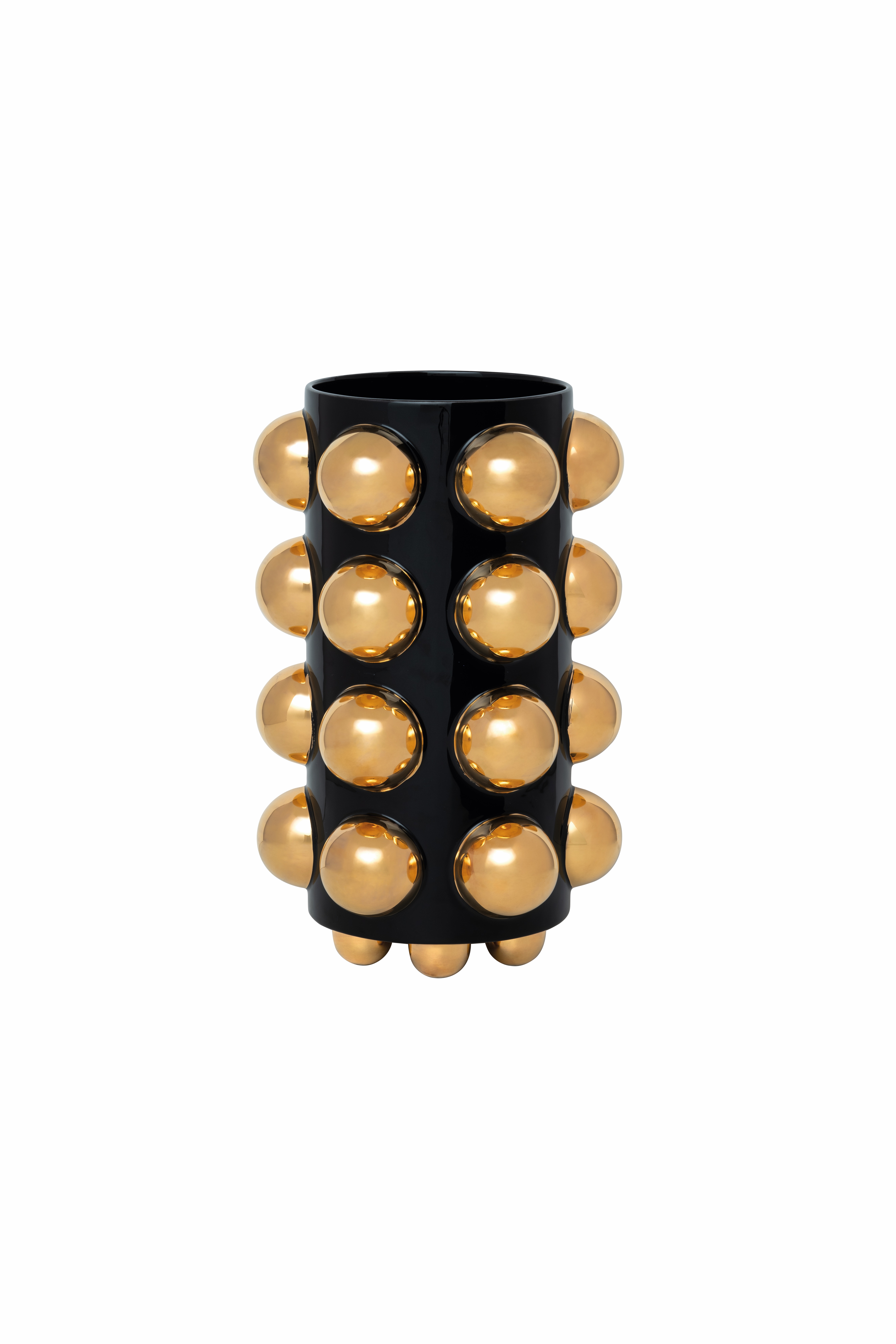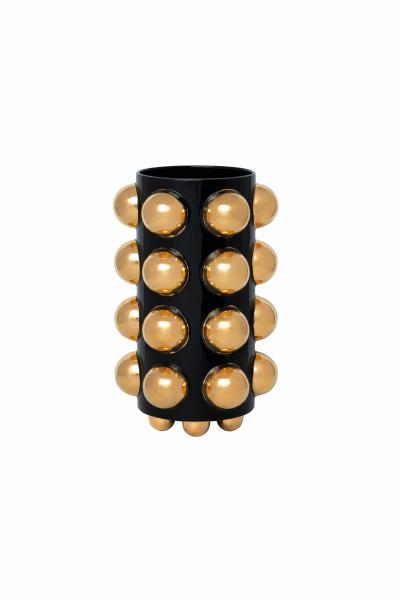 The combination of elegance and irreverence result in a modern collection with lots of attitude. This white and gold vase will be the focus of any room.