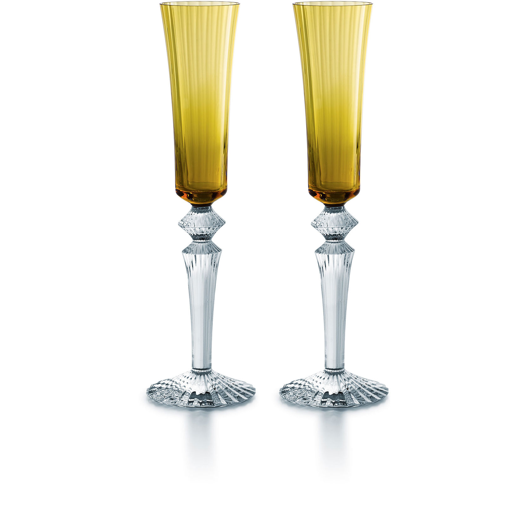 The name Mille Nuits is a reference to the 1001 Tales of The Arabian Nights and to the world of the Orient. The –issimo suffix emphasizes the design's overall sleekness. The smooth narrow bowl contrasts with the intricacy of the beveled stem: the detailing travels all the way down to the ridged foot. The two halves are united by the elegant diamond-shaped center, which is the Mille Nuits signature.