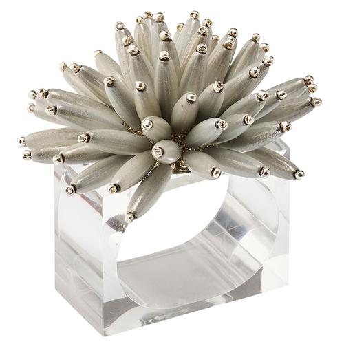 The Spoke Napkin Ring exudes elegance and refinement. The silver beads are arranged to look like a blooming flower. The blend of earthy tones and smooth or metallic surfaces enhances both a casual or formal setting.