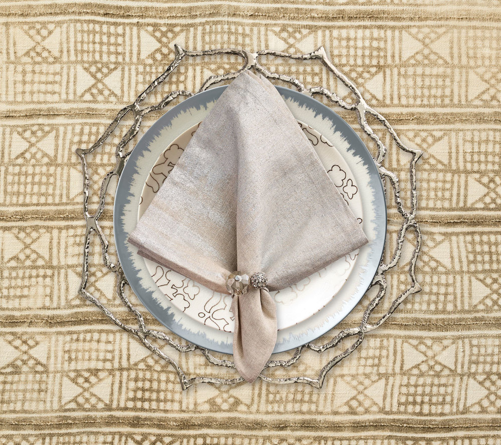 A luxe combination, crystal and rhinestones bedeck any setting for a glamorous touch. Pair with a simple linen napkin for an effortlessly chic look.