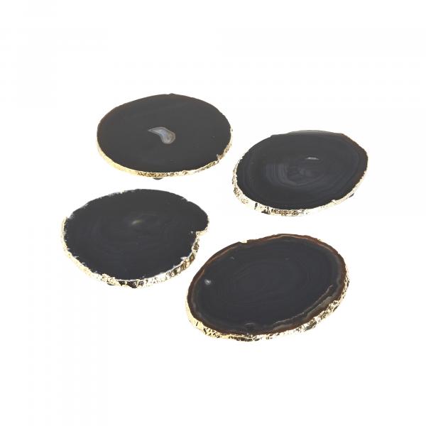 Beautifully polished agate gemstones are crafted into roughly round, luxury coasters with appealing natural edges. Like nature's fingerprints, these coasters are truly one of a kind and will add a natural touch to your table.