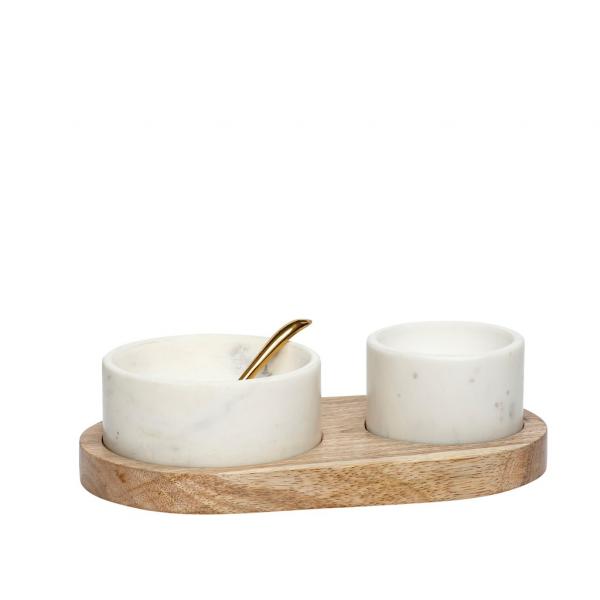 Table Accessories Cruets Marble Holder with Two Bowls and Spoon
