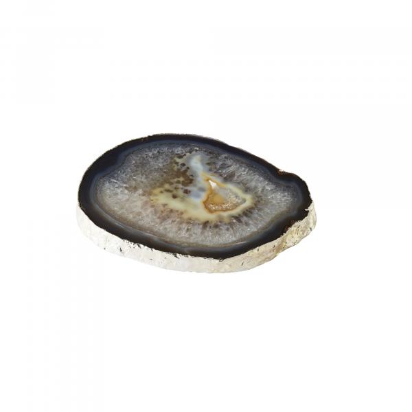 Thick Natural Agate Trivet with Silver