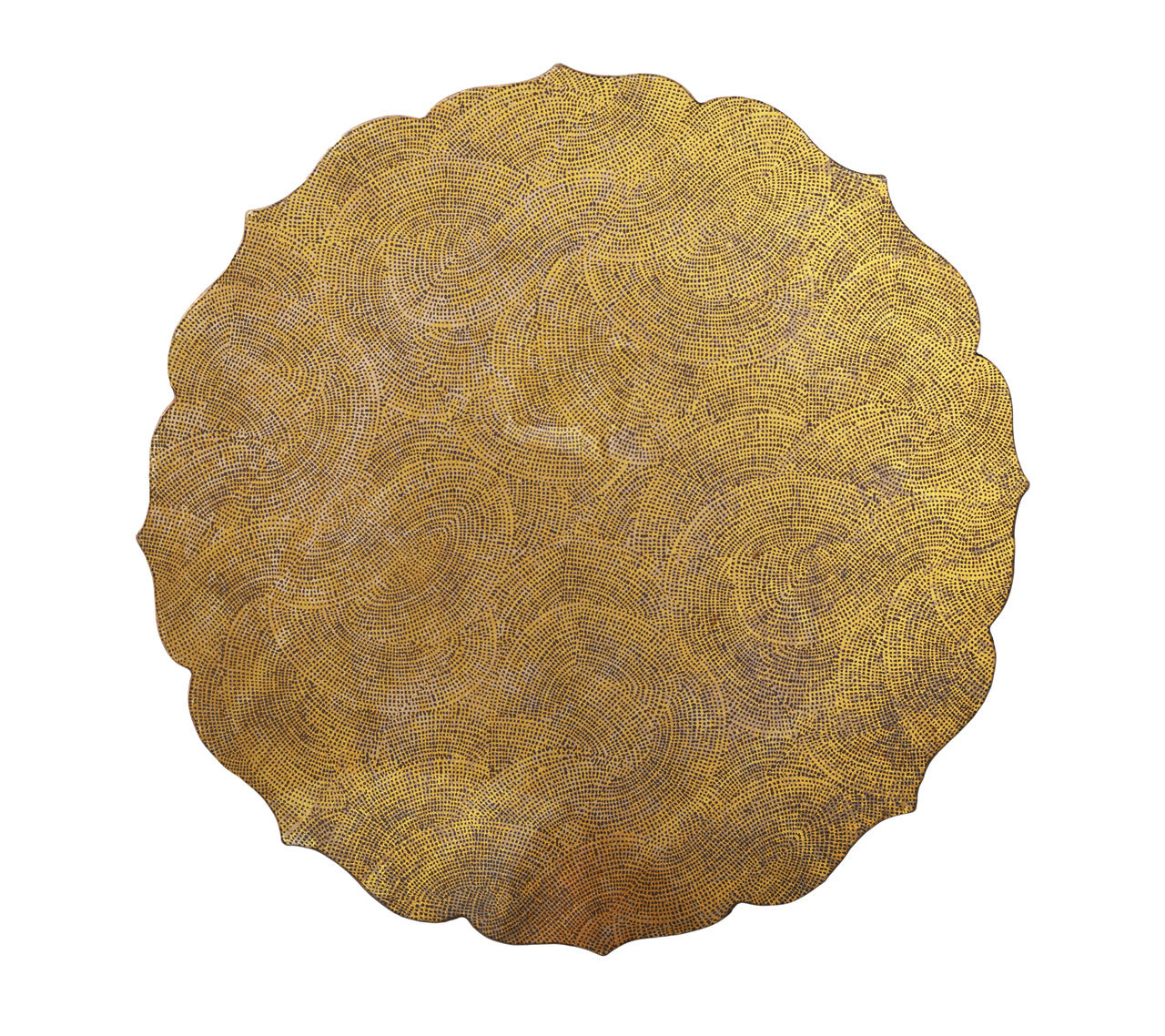 Like a pointillist painting, these minute dots form an interwoven, continuous design that transitions easily from casual to formal settings. Hand-applied foil, which will vary in density, add depth and luster.