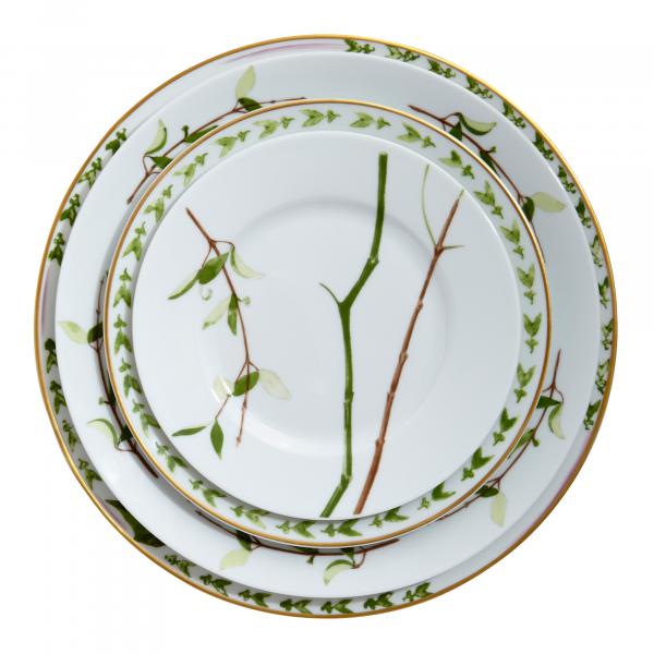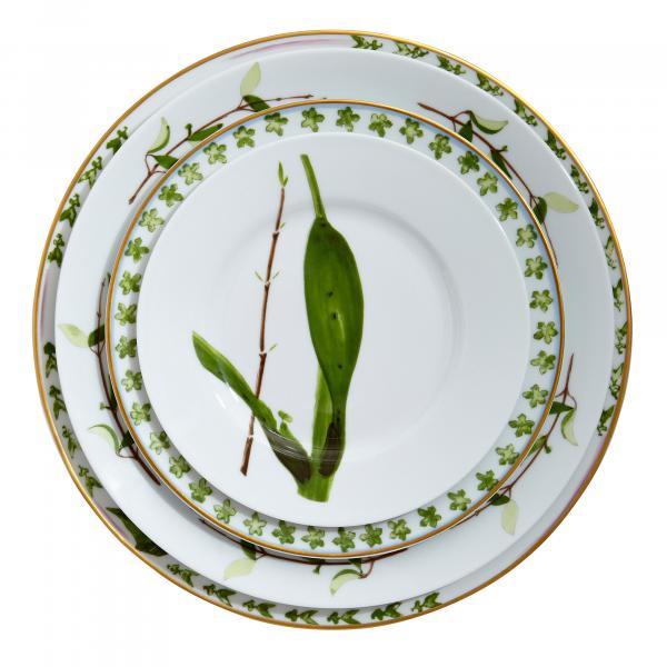 Christian Tortu, mainly known for his striking flower arrangements, designed this Verdures collection. Inspired by the shapes and colors of nature, the collection features leaves, stems and plants climbing the white china. Whatever the season, you can bring nature's fresh colors to your table.