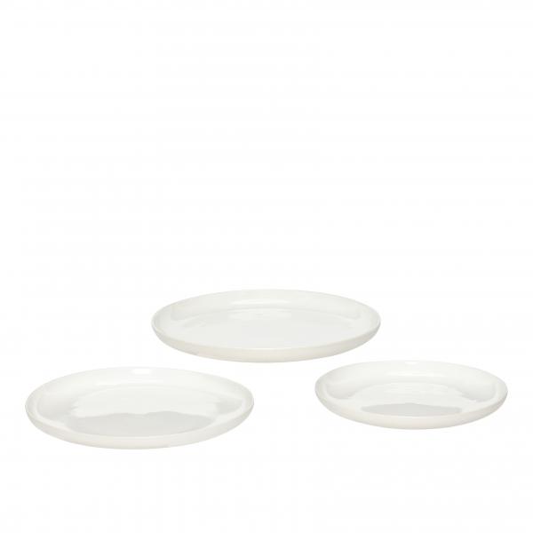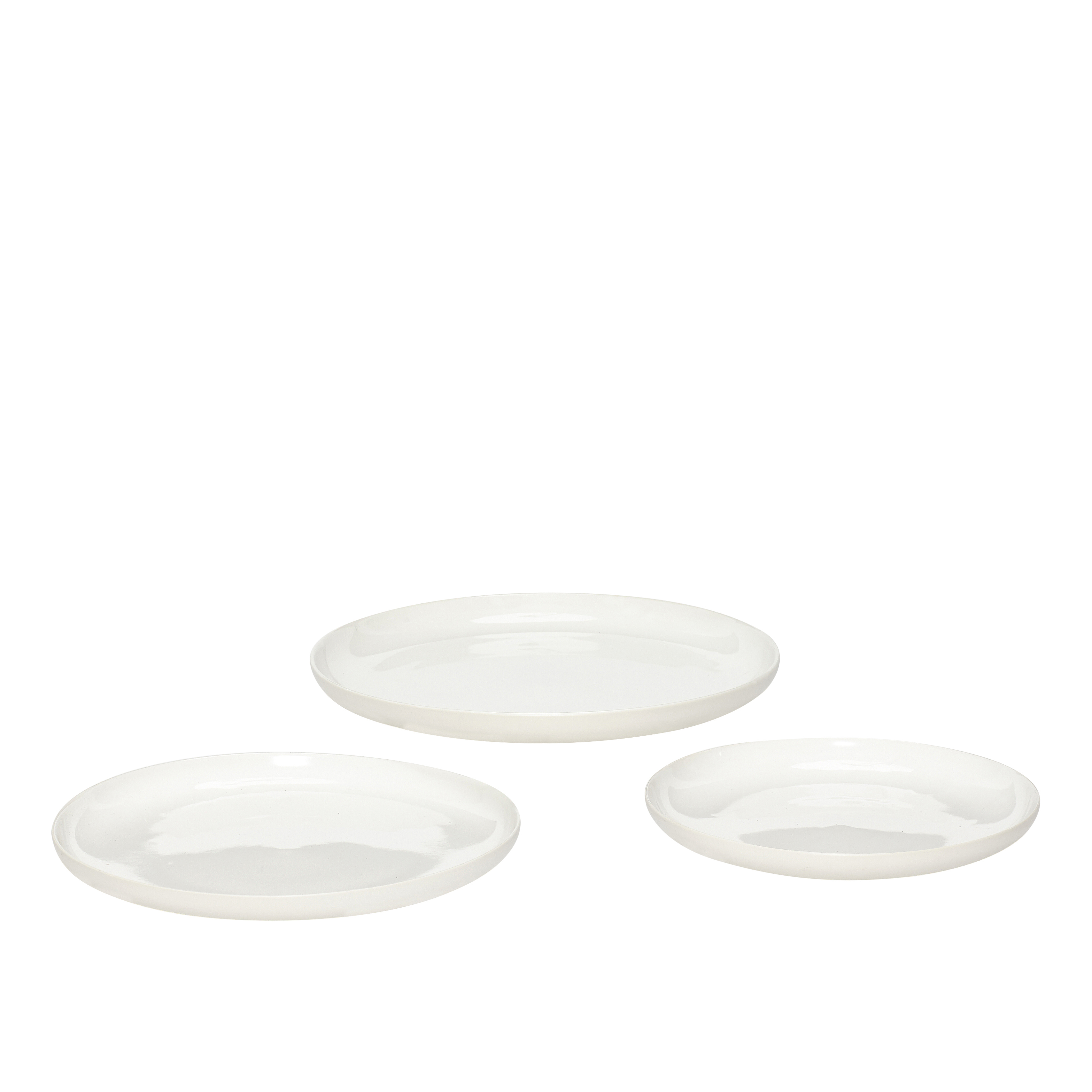 Set of 3 white porcelain plates with smooth, elegant lines.